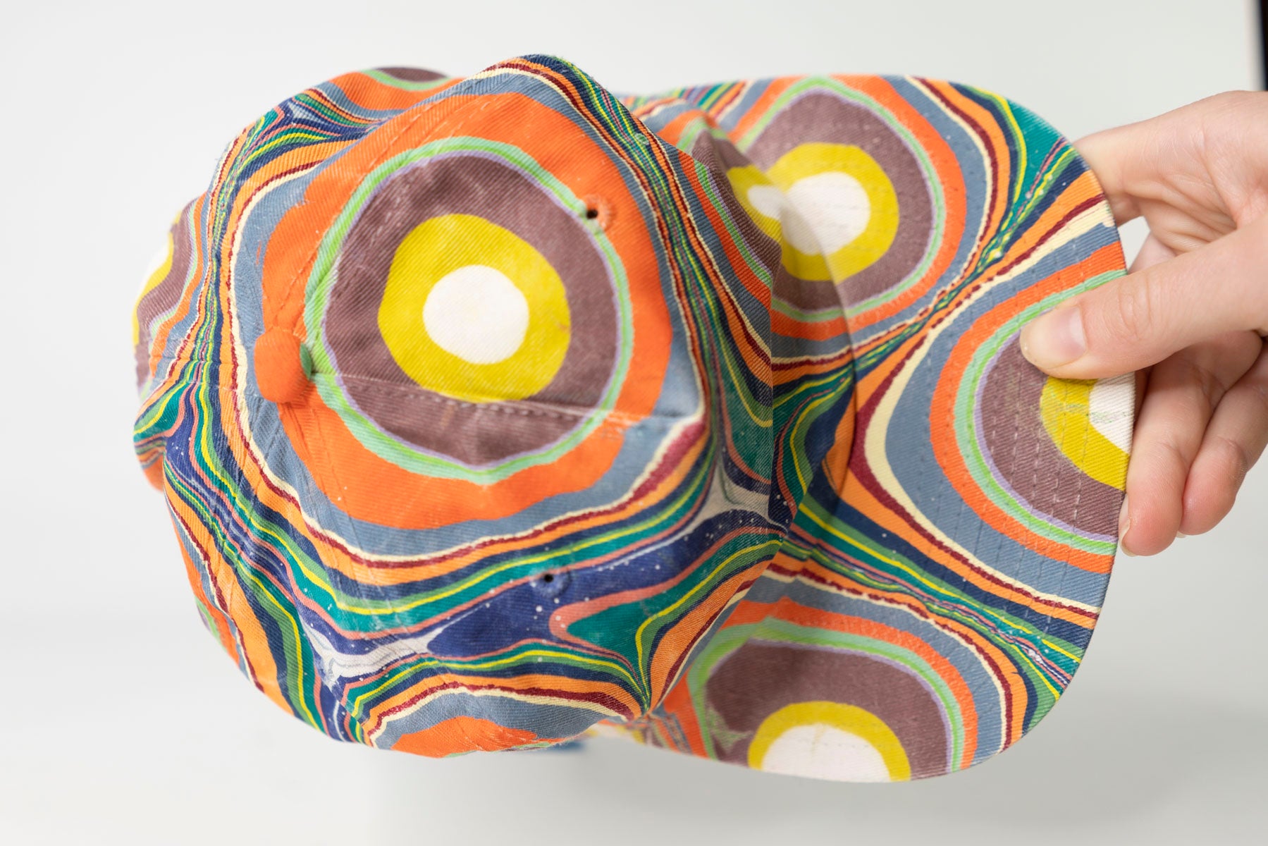 Each Tempered East marbled hat is one-of-a-kind artwork for your head! The hat has a mid-profile, 5-panel design with a flat brim crafted from lightweight 100% cotton and includes an adjustable fastener with a metal clasp. The flat brim hat has been dipped into a marbled pattern designed and created by hand using acrylic-based paints and treated for long-lasting color.