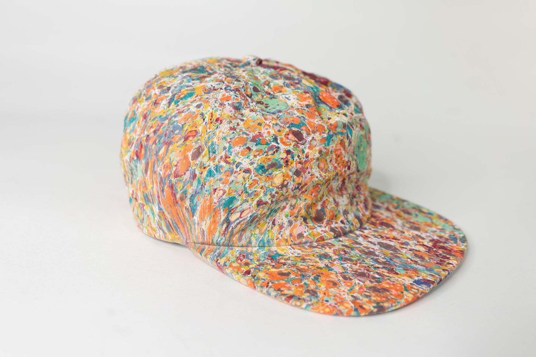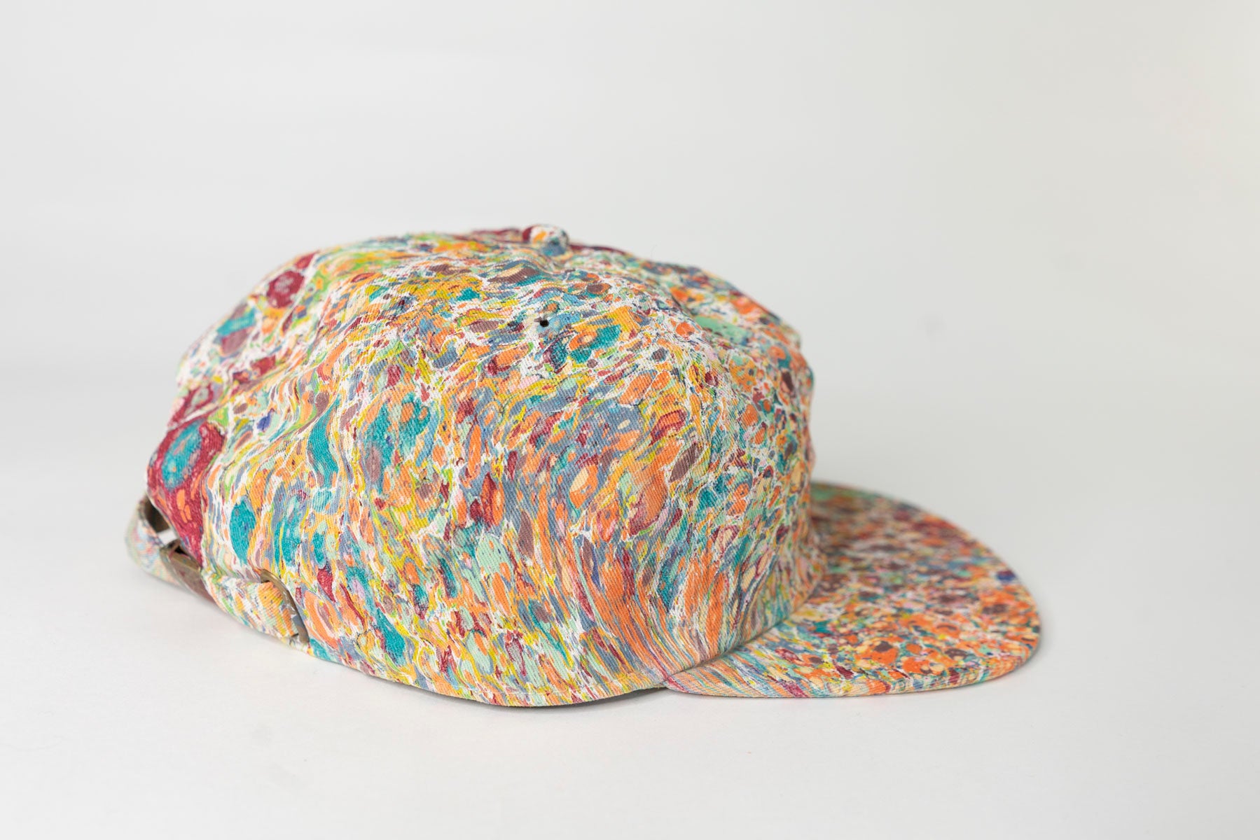 Each Tempered East marbled hat is one-of-a-kind artwork for your head! The hat has a mid-profile, 5-panel design with a flat brim crafted from lightweight 100% cotton and includes an adjustable fastener with a metal clasp. The flat brim hat has been dipped into a marbled pattern designed and created by hand using acrylic-based paints and treated for long-lasting color.